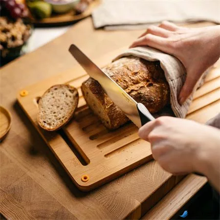 -rozsdamentes acél penge - tartós és éles, amely könnyedén vágja a kenyérfélék különböző típusait, legyen szó friss cipóról vagy bagettről