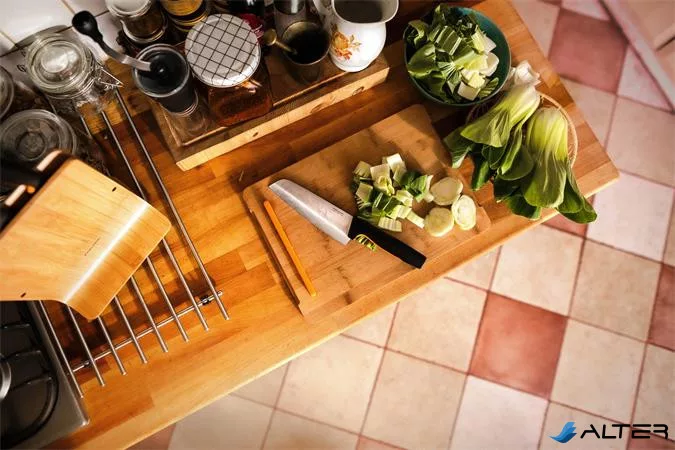 Ázsiai típusú, széles pengével ellátott általános kés, húsok, halak és zöldségek előkészítéséhez.