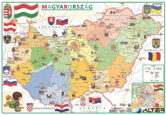 Könyökalátét, kétoldalas, A3, STIEFEL "Gyerek Mo. közigazgatása /Mo. domborzata"