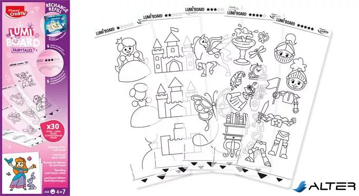 Kreatív rajzkészlet, kiegészítő sablon, tündérmese, MAPED CREATIV 'Lumi Board'