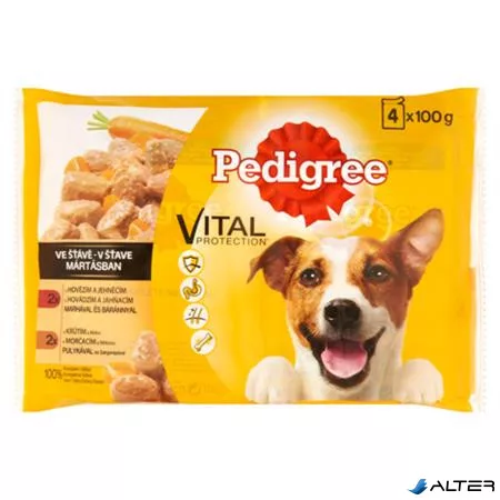 Kutyaeledel, alutasakos, 4x100 g, PEDIGREE, marha és bárány, pulyka és répa