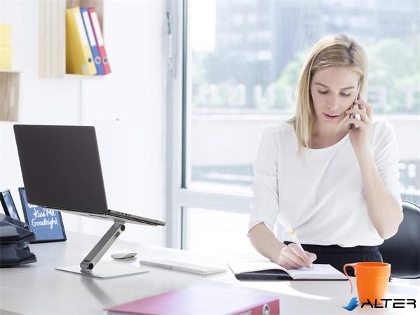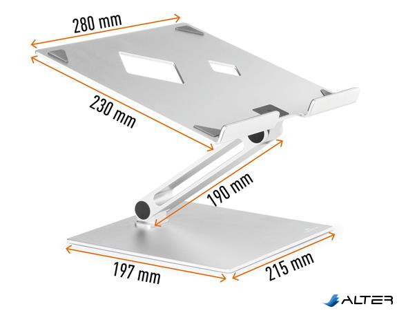 Állítható magasságú asztali állvány laptopokhoz és táblagépekhez. Helyet és rendet teremt az íróasztalon.