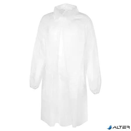 Látogató köpeny, egyszer használatos, polipropilén, tépőzáras, XL méret, fehér