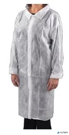 Látogató köpeny, egyszer használatos, tépőzáras, polipropilén, 20g, S méret, fehér