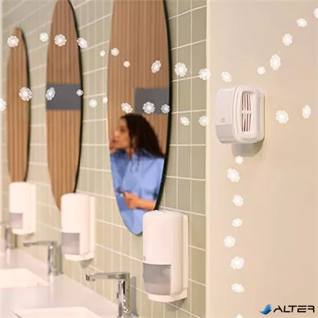 Az Elevation termékcsaládba tartozó Tork folyamatos adagolású légfrissítő adagoló folyamatosan és egyenletesen oszlatja el az illatot.