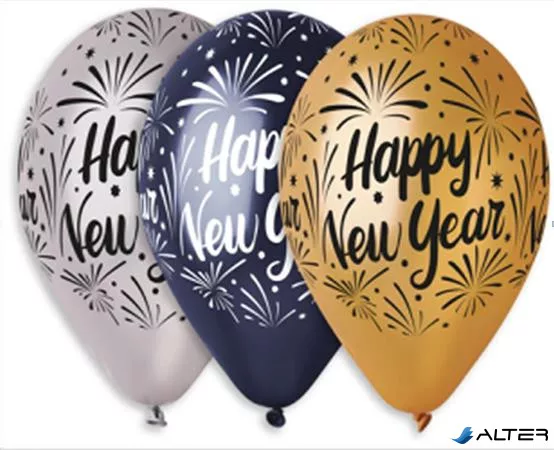 Léggömb, 33 cm, 'Happy New Year', 3 különböző szín