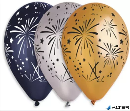 Léggömb, 33 cm, tüzijátékos, 3 különböző szín