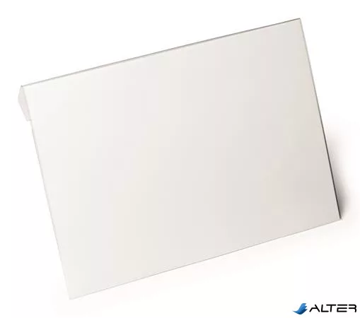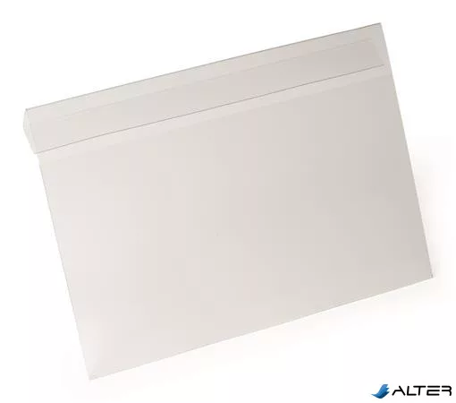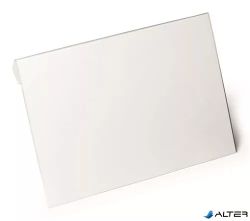-átlátszó PET kemény fóliából készült, hajtással ellátott irattartó tok, mely alkalmas kartondobozok, dobozok vagy más tárolóedények fölé függesztésre
