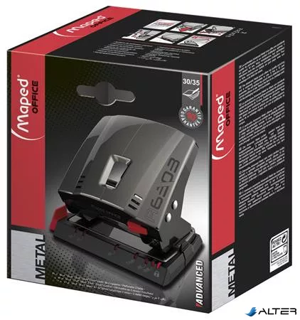 Lyukasztó, kétlyukú, 35 lap, fém, MAPED "Advanced", sötétbarna