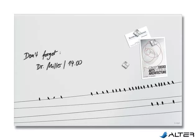Mágneses üvegtábla, 60x40x1,5 cm, SIGEL 'Artverum® ', Little birds mintázat, matt