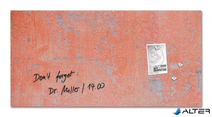 Mágneses üvegtábla, 91x46x1,5 cm, SIGEL 'Artverum® ', piros fal mintázat, matt