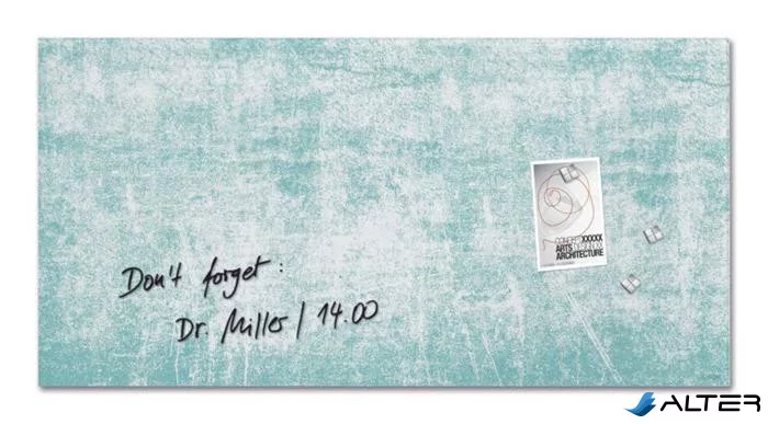 Mágneses üvegtábla, 91x46x1,5 cm, SIGEL 'Artverum® ', türkizkék fal mintázat, matt