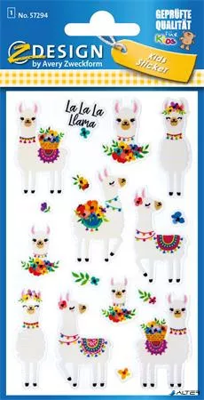 Matrica, műanyag, 1 ív, 76x120 mm, AVERY ZWECKFORM, "Z-Design No.57294", csillámos láma