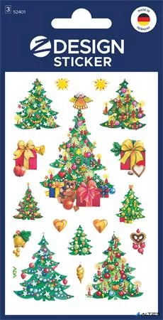 Matrica, papír, 3 ív, 76x120 mm, AVERY ZWECKFORM, 'Z-Design No.52401', karácsonyfa