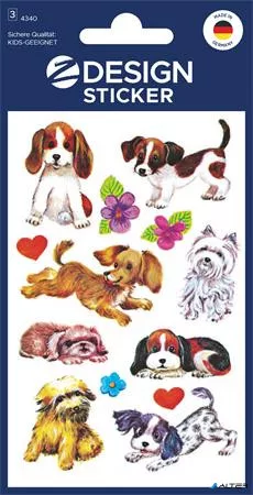 Matrica, papír, 3 ív, 76x120 mm, AVERY ZWECKFORM, "Z-Design No.4340", kiskutyusok