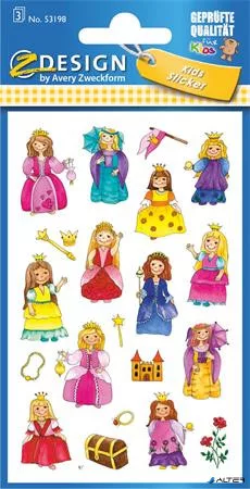 Matrica, papír, 3 ív, 76x120 mm, AVERY ZWECKFORM, 'Z-Design No.53198', királylány