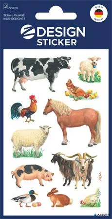 Matrica, papír, 3 ív, 76x120 mm, AVERY ZWECKFORM, 'Z-Design No.53720', háziállatok