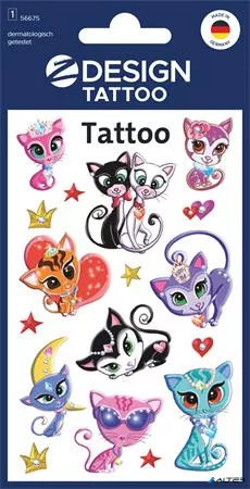 Matrica, tetoválás, 1 ív, 76x120 mm, AVERY ZWECKFORM, 'Z-Design No.56675', cicák