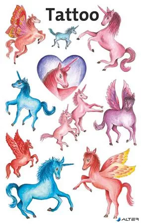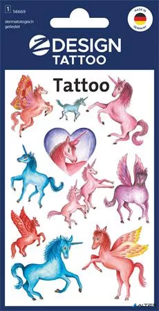 Matrica, tetoválás, 1 ív, 76x120 mm, AVERY ZWECKFORM, 'Z-Design No.5669', unikornisok