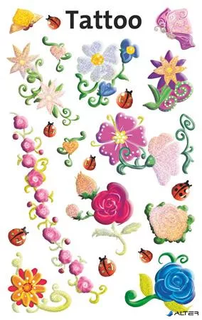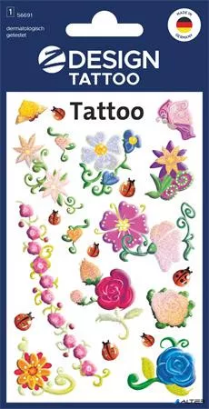 Matrica, tetoválás, 1 ív, 76x120 mm, AVERY ZWECKFORM, 'Z-Design No.56691', színes virágok