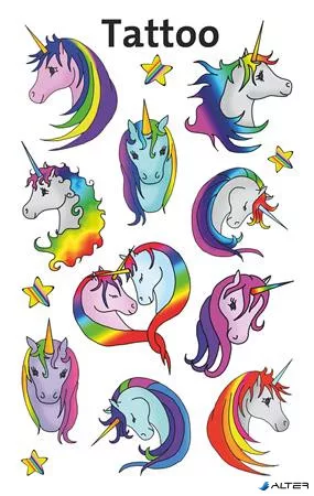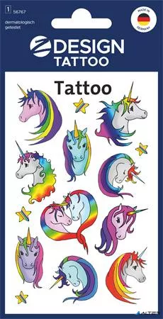 Matrica, tetoválás, 1 ív, 76x120 mm, AVERY ZWECKFORM, 'Z-Design No.56767', unikornisok