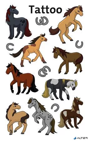 A föld minden boldogsága a lóháton van! Vagy tetoválhatod őket a bőrödre – persze nem igazából, mégis megtévesztően valódinak tűnnek. A csodálatos lovas tetoválásokkal és szerencsehozó patkókkal mindenkinek lehet egy csodálatos kedvenc lovacskája! Lepje meg gyermekeit fantasztikus tetoválásokkal, amelyek tökéletesek ajándéknak, meglepinek, születésnapi bulikra vagy egyszerűen egy közös játékhoz a gyerekeknek.