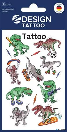 Matrica, tetoválás, 1 ív, 76x120 mm, AVERY ZWECKFORM, 'Z-Design No.56772', dínók