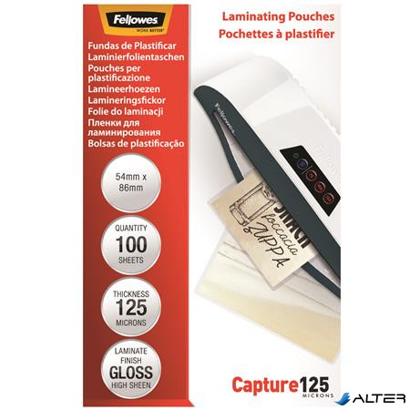 Meleglamináló fólia, 125 mikron, 54x86 mm, fényes, 100 db, FELLOWES