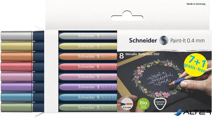 Metálfényű rollertoll készlet, 0,4 mm, SCHNEIDER "Paint-It 050" 8 különböző szín