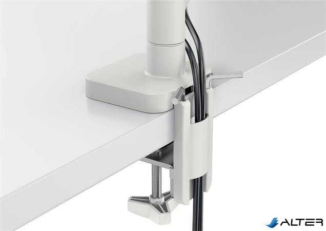 -könnyen felszerelhető a mellékelt gyorskioldású, levehető Vesa® lemezzel (75 és 100 mm) és szilikon gumírozott U-alakú szorítópánttal, amely csökkenti a rezgéseket és védi az íróasztal felületét, vagy az asztalon található furaton keresztül (asztali vastagságtartomány: 10-80 mm)