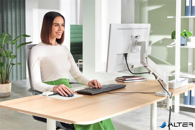 A Leitz helytakarékos monitortartó-kar pozitív hatással van a testtartásra, valamint támogatja a nyak, a váll és a szem kényelmét, amennyiben a monitor magasságát helyesen és az ajánlásnak megfelelően az ideális ergonómiai pozícióba állítják.