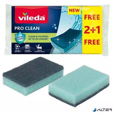 Mosogatószivacs, 2+1 db, VILEDA "Pro Clean", kék