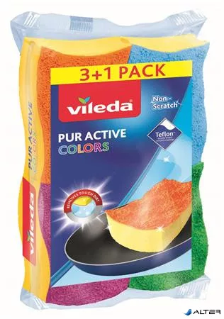 Mosogatószivacs, 3+1 db, VILEDA "Pur Active Colors"