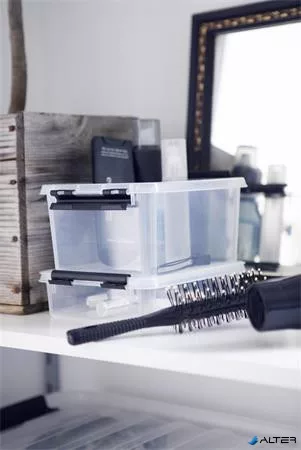 Műanyag tárolódoboz, 2 liter, fekete fogantyúkkal, SMARTSTORE "Classic 2", átlátszó