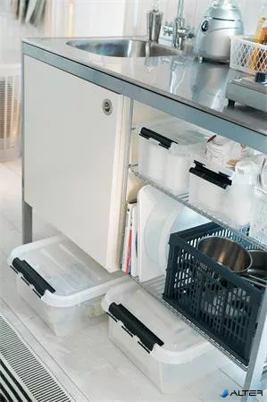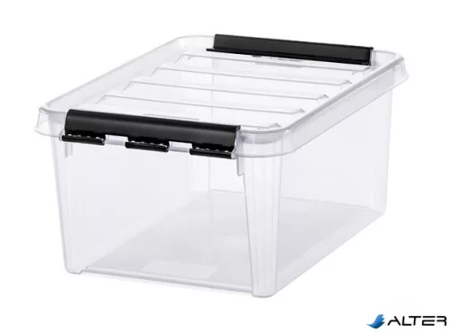 Műanyag tárolódoboz, 8 liter, fekete fogantyúkkal, SMARTSTORE "Classic 10", átlátszó