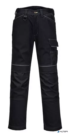 A nadrág 10 praktikus tároló zsebbel, felső nyílású térdpárna tartóval és állítható szárhosszal rendelkezik (5cm-es állítási lehetőség). Tartós poliészter/pamut anyaga nagy teljesítményt és maximális viselési kényelmet biztosít. A csúszásmentes, rugalmas belső derékkialakítás segít helyén tartani a felsőruházatot. A megerősített panelek maximális tartósságot biztosítanak ott, ahol a legnagyobb igénybevételnek van kitéve. Az UV sugárzás 96%-át blokkolja (anyag 50+ UPF értékkel rendelkezik). A PW3 munkaruha család tagja, a T603 cikkszámú kabáttal kompatibilis.