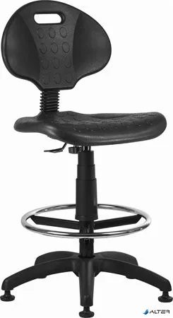 Munkaszék, háttámlás, műanyag ülőfelület,lábtartógyűrűvel, tappanccsal '1290', fekete