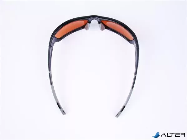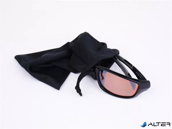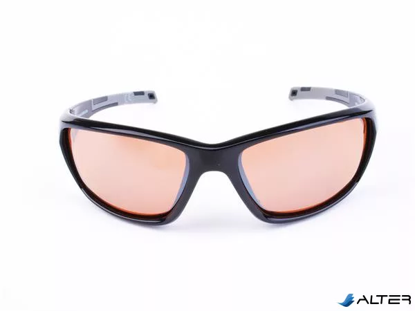 Sportnapszemüveg borostyánszínű HD lencsével, fekete műanyag kerettel.