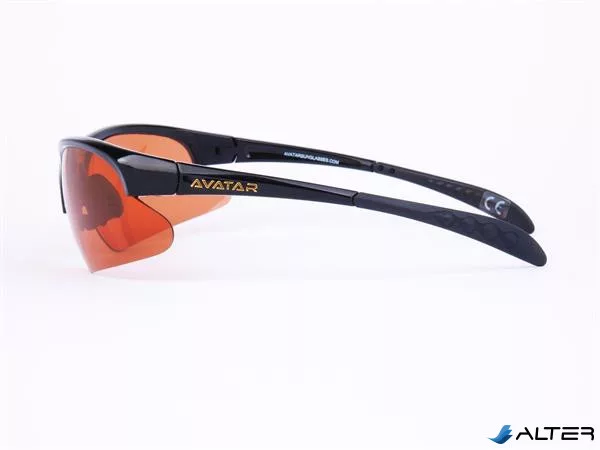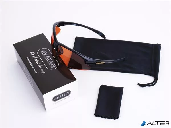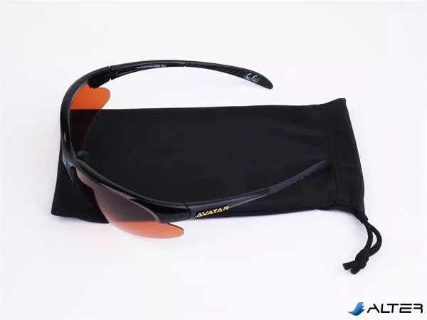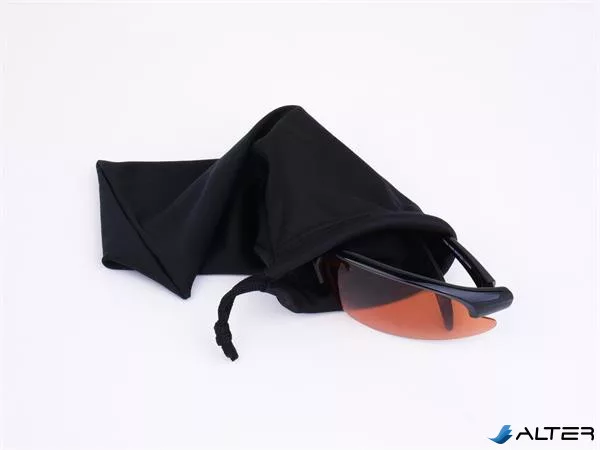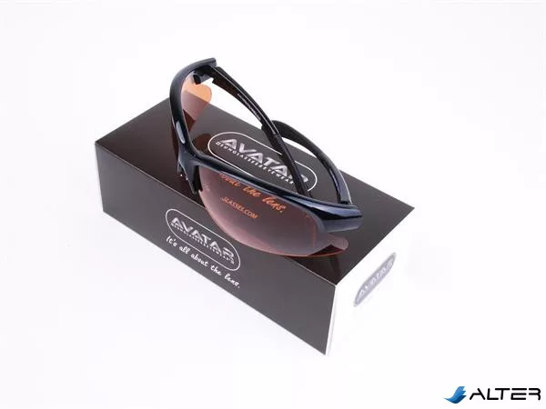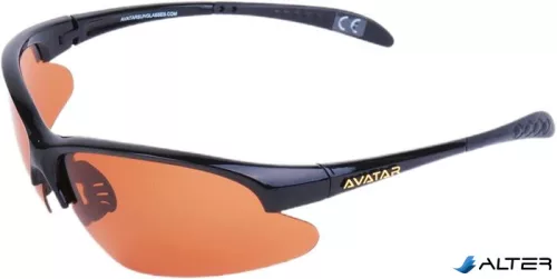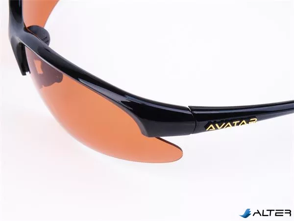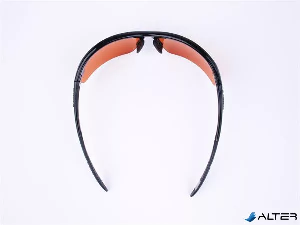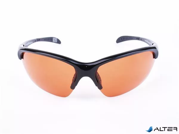 Sportnapszemüveg borostyánszínű HD és polarizált lencsével, fekete műanyag kerettel.