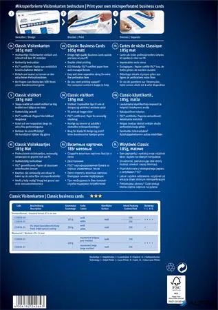 Névjegykártya, 85x54 mm, 185 g, mikroperforált, AVERY ZWECKFORM, 250 db/csomag