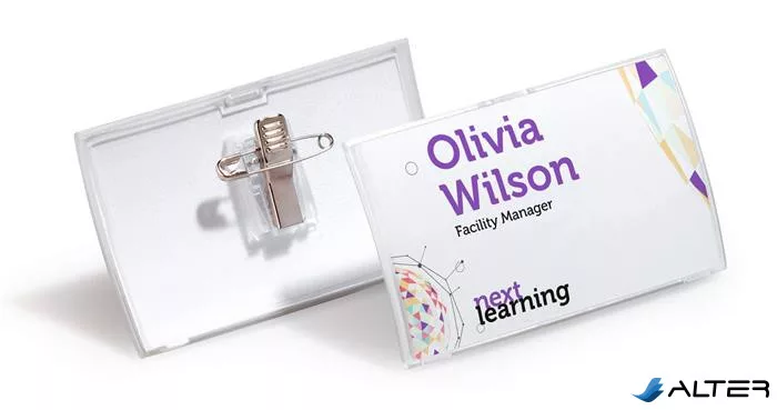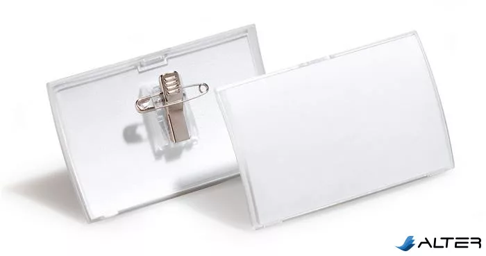 Névkitűző, csíptetővel és tűvel, PP, 40x75 mm, DURABLE 'CLICK FOLD'