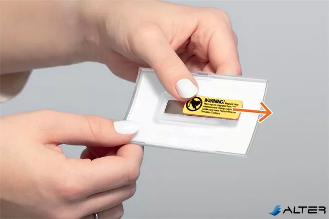 -speciális mágneses rögzítéssel (megakadályozza, hogy a névtábla elforduljon, elcsússzon vagy meglazuljon viselés közben)
