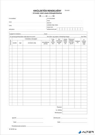 Nyomtatvány, kiküldetési rendelvény (belföldi), 25x2, A4, VICTORIA PAPER "B.18-73", 10 tömb/csomag