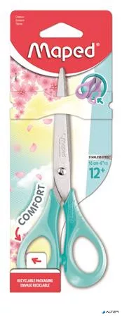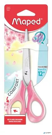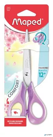 Olló, iskolai, 16 cm, rugalmas nyél, MAPED "Sensoft 3D", vegyes pasztell színek