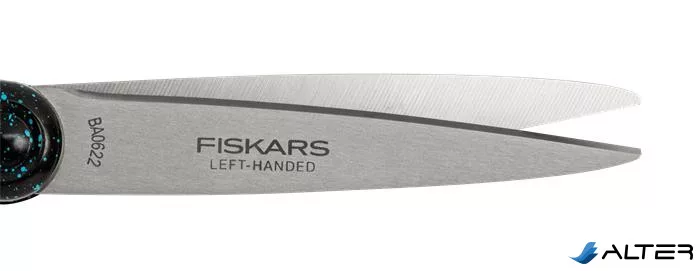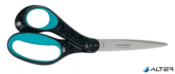 Olló, ifjúsági, 20 cm, balkezes, FISKARS, foltos pávakék