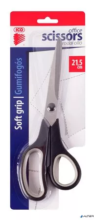 Olló, irodai, 21,5 cm, gumifogós, ICO, fekete