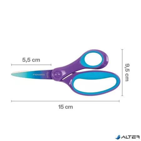 Olló, iskolai, 15 cm, FISKARS, ombré lila