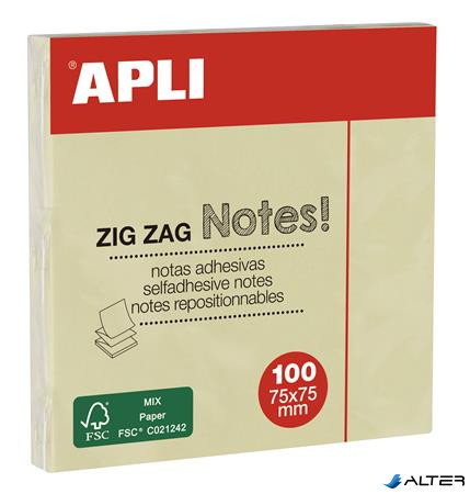 Öntapadó jegyzettömb, "Z", 75x75 mm, 100 lap, APLI "Classic", sárga