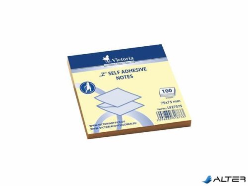 Öntapadó jegyzettömb, "Z", 75x75 mm, 100 lap, VICTORIA OFFICE, sárga