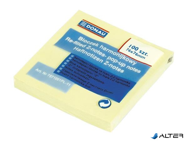 Öntapadó jegyzettömb, "Z", 76x76 mm, 100 lap, DONAU, sárga
